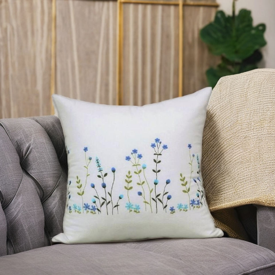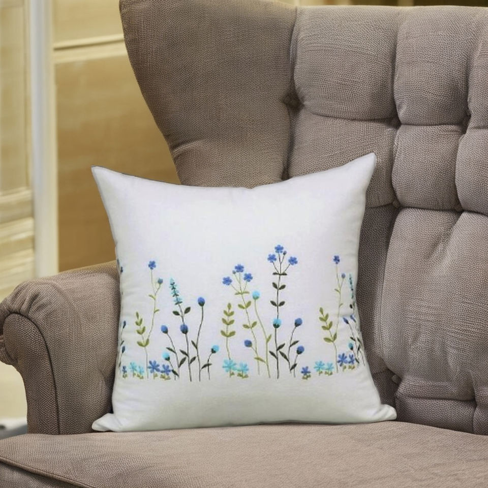 Wholesale Embroidery Flower Garden Square Cushion Cover High Quality White Cotton Embroidery Throw Pillowcase Sofa Covers