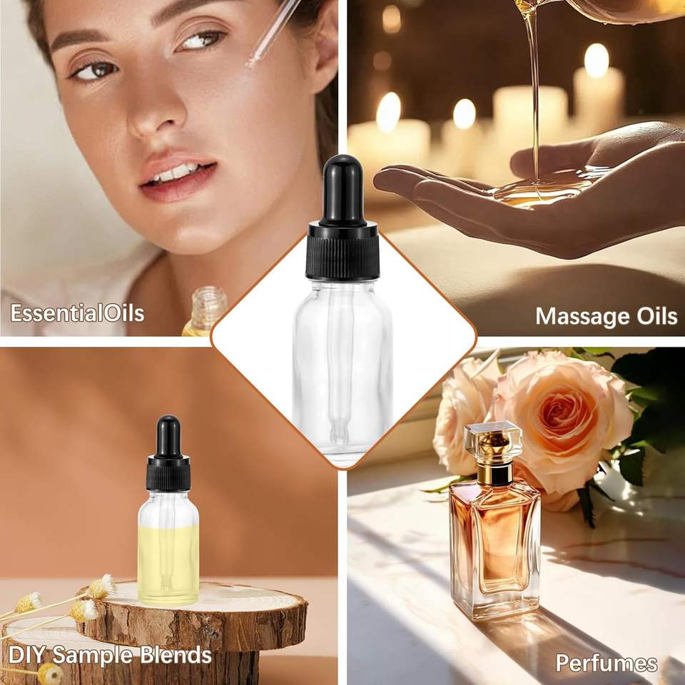Wholesale Empty Custom Logo Clear Blue Green Black Round Cosmetic Essential Oil Container Glass Dropper Bottle 30 ml Clear