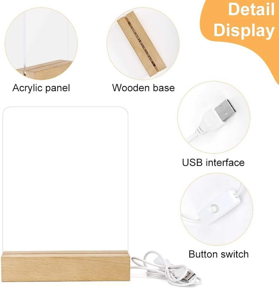 Product name:DIY Acrylic Lamp/acrylic with wood base/boards with light and writing