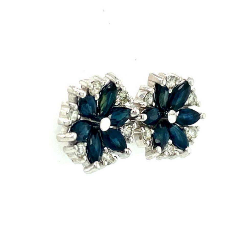 Wholesale Ethnic Jewelry Rhodium Sterling Silver .925 Women's Party Wear Earrings Precious Blue Sapphire Diamond for Weddings