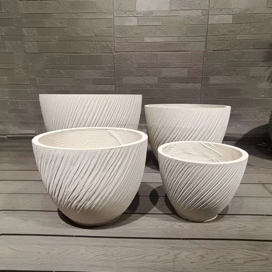 Wholesale Europe Large Cylindrical Wood Pattern Fiber Clay Flower Pot Indoor/Outdoor Use Floor High-Exhibitions Home Garden