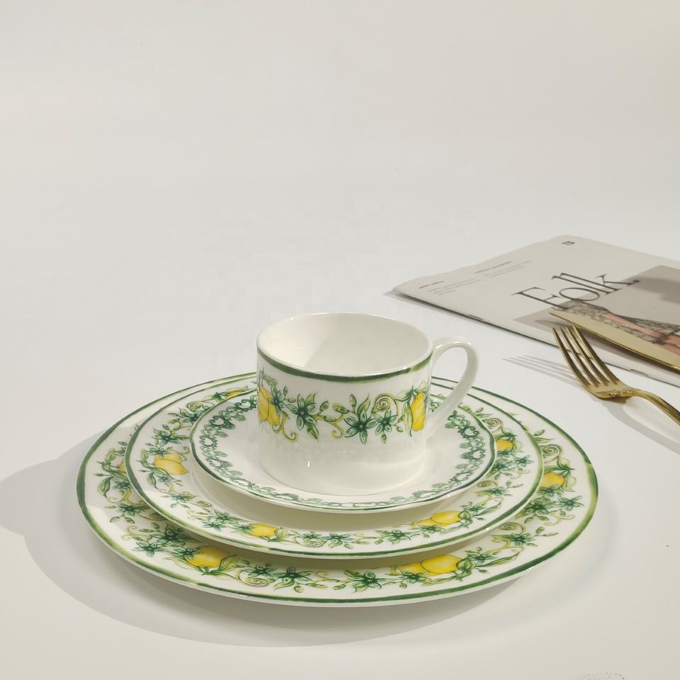 Wholesale European Luxury Lemon Patterned Bone China Plate Sets