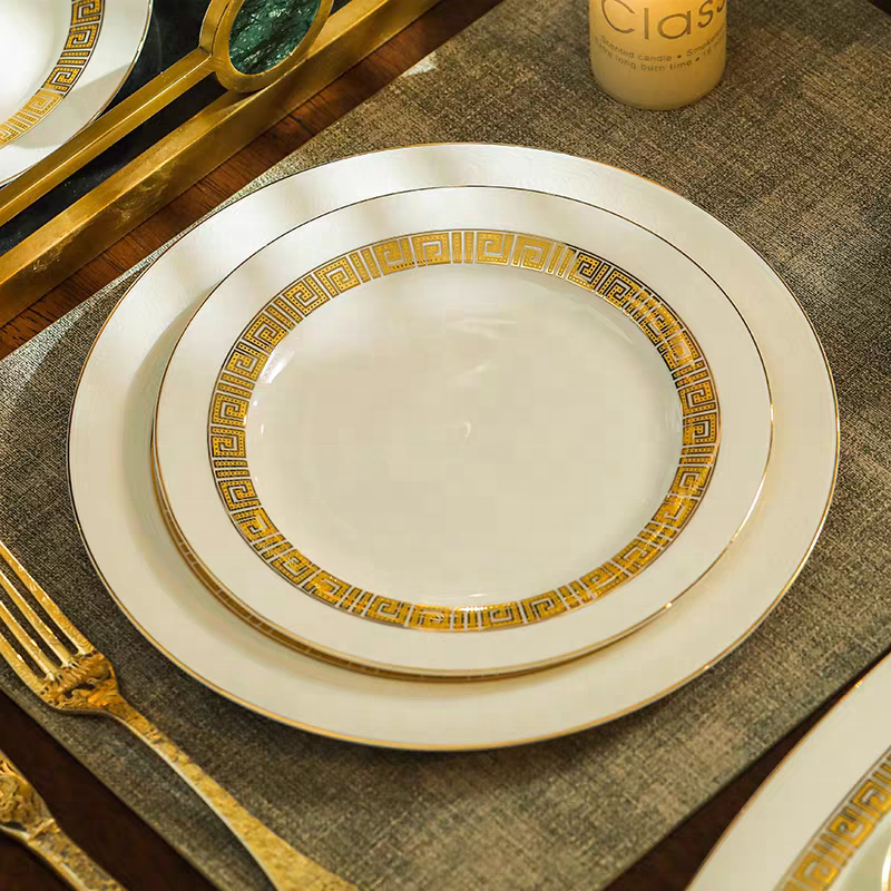Wholesale European Style Gold 60pcs Bone China Dinnerware Set and Porcelain Plate Set for Business Gifts On-glazed