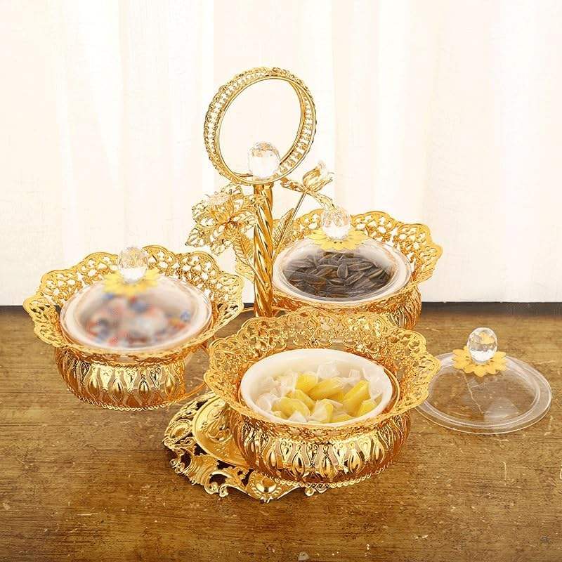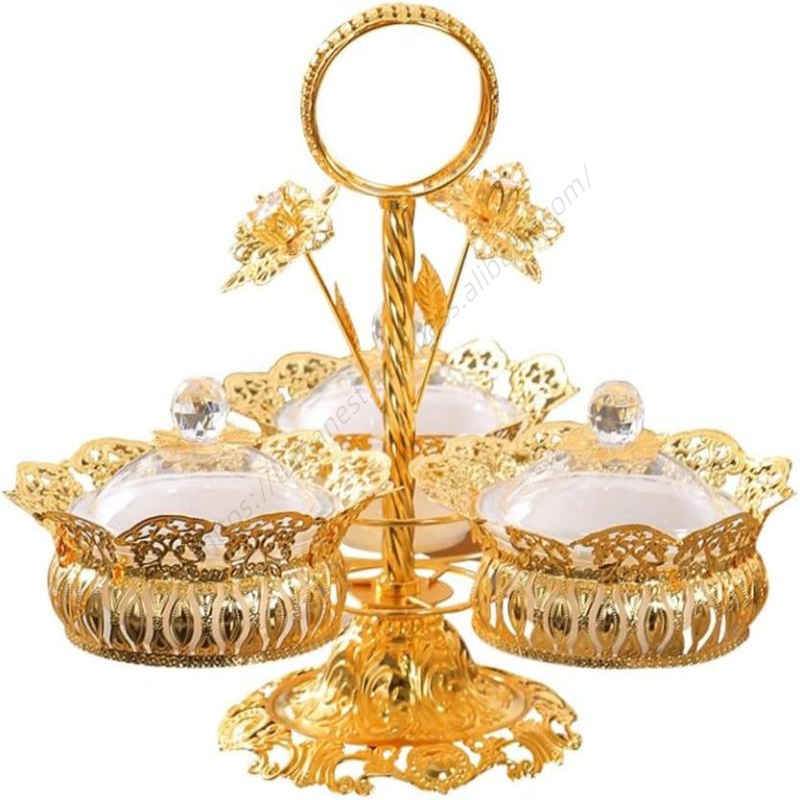 Wholesale European Style Golden Metal 4 Bowls Ceramic Cake Serving Plate for Ramadan Decorations