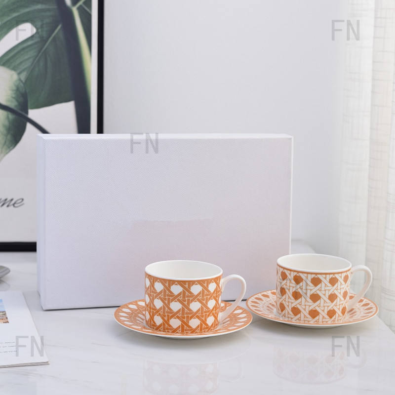 Wholesale European Style Luxury Bone China Double Cup Saucer for Afternoon Tea