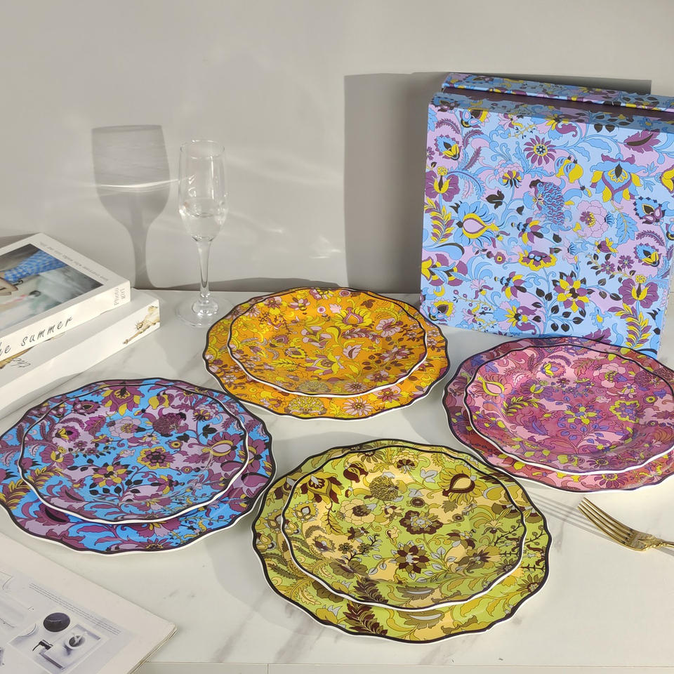 Wholesale European Style Plant Porcelain Plate Sets and Luxury Bone China Charger Plates
