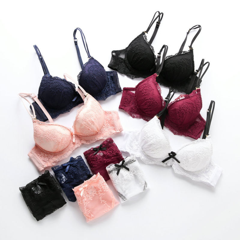 Wholesale European and American Sexy Lace Ribbon Insert Pad with Steel Ring Gathering Underwear Women's Bra Set