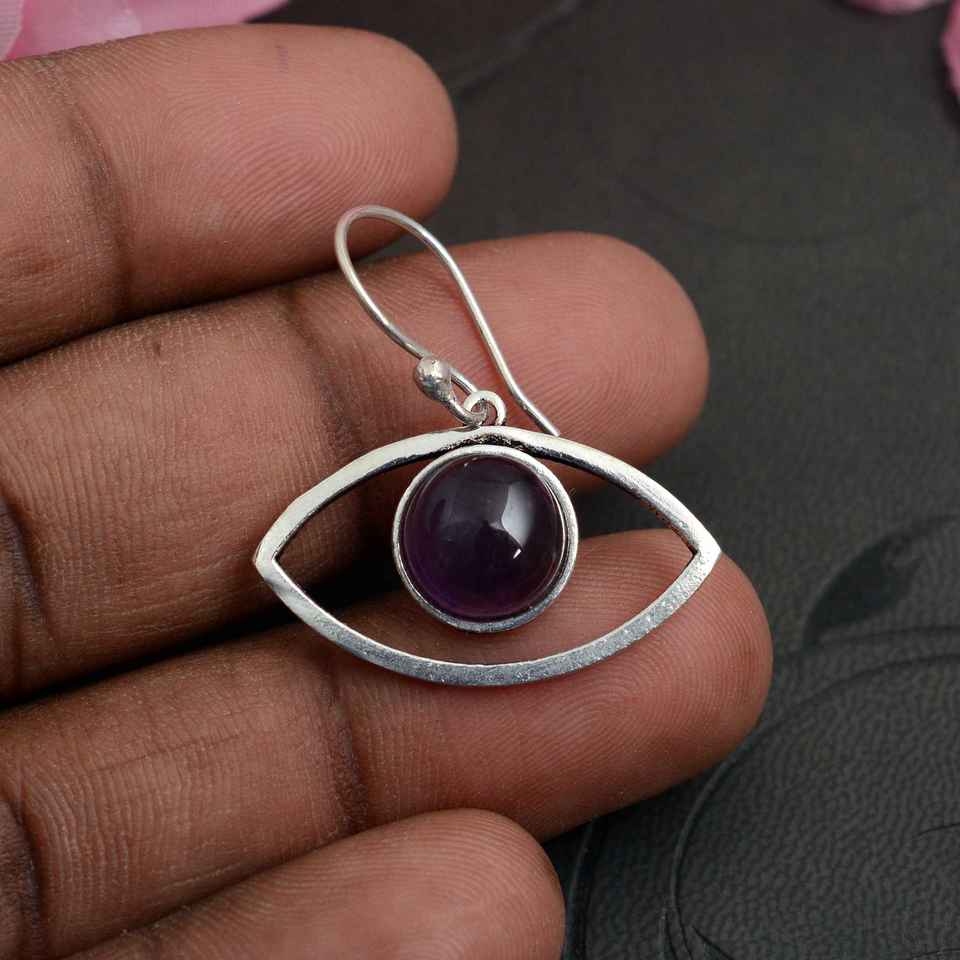 Wholesale Evil Eye Earrings Obsidian Stone Gold Plated Brass Jewelry Protection Charm Boho Fashion Handmade Statement Dangle