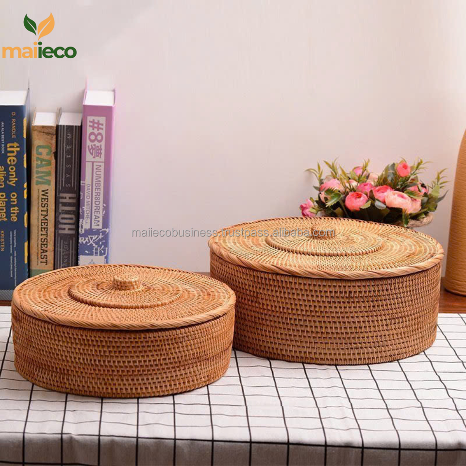 Round Rattan Baskets With Lid