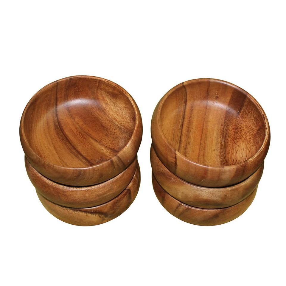 Wholesale Exporter Solid Wood Grain Logo Custom Acacia Wooden Food Fruit Bowls Round Salad Bowls