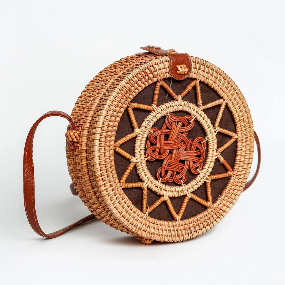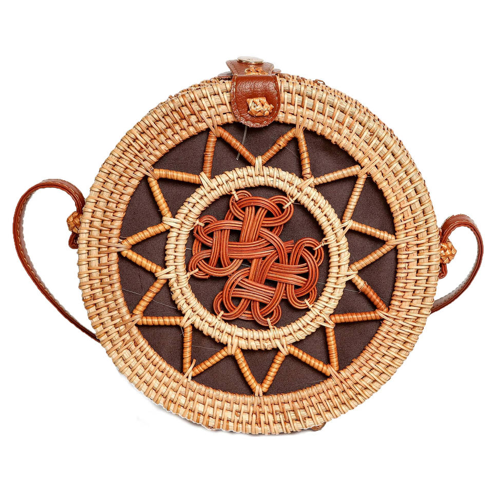 Wholesale Exquisite Handmade Wicker Woven Star Circle Design Rattan Shoulder Bag Elegant Made in Viet Nam
