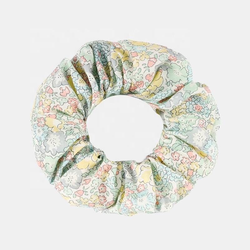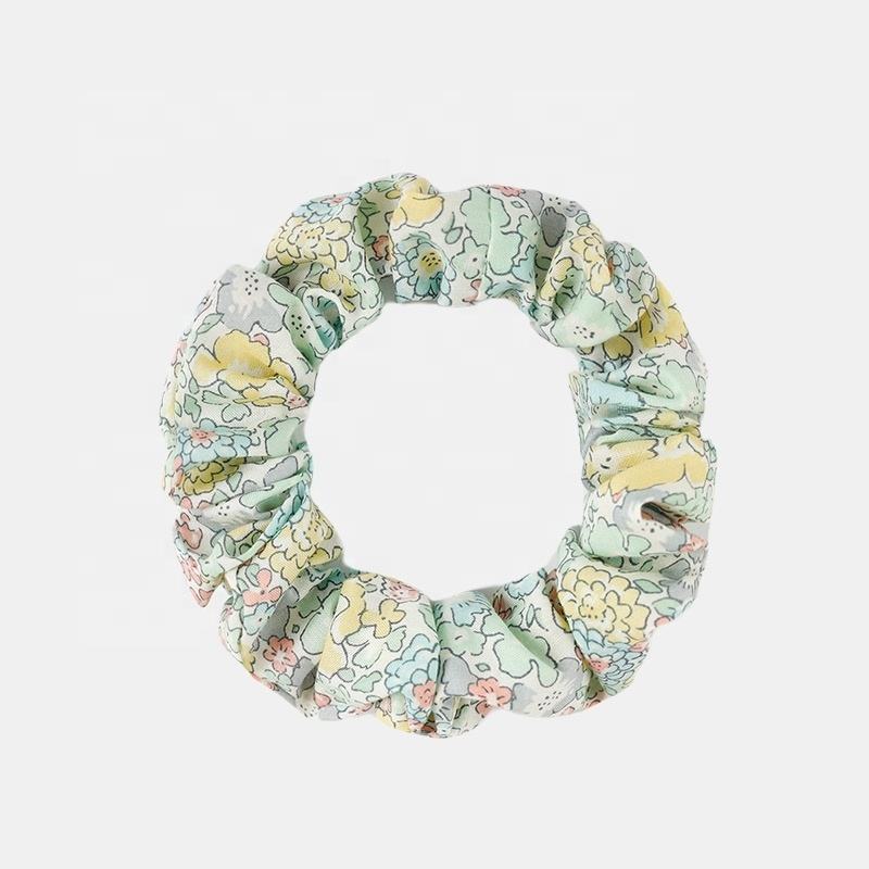 Wholesale Fabric Elastic Band Scrunchies Accessories Print Green Floral Bow Hair Ties for Girls