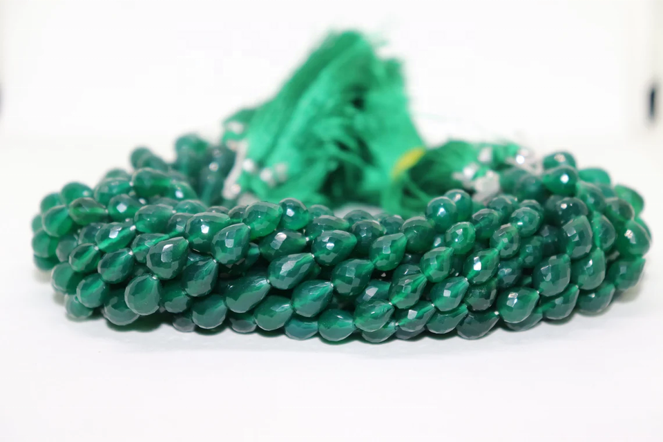 Wholesale Faceted Green Onyx Beads 6*8 mm 8 Inches Straight Cut Heart Natural Stone for Jewelry Making