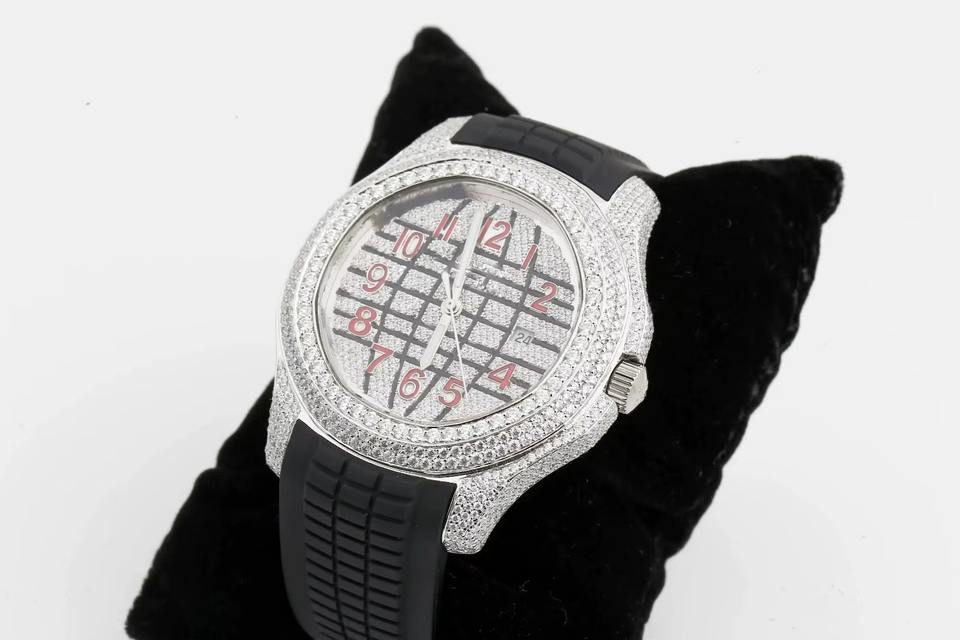 Wholesale Factory Black Band Moissanite Diamond Studded Wrist Watch with Iced Out Moissanite Watch for Gift Pass Diamond Tester