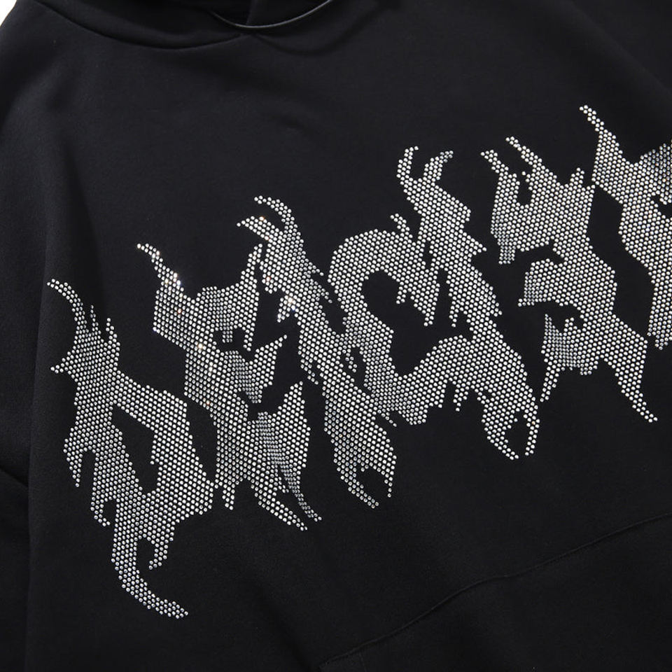 Wholesale Factory Custom Rhinestone Hoodies Fleece Bling Skull Skeleton Logo Design Full Zip Up Rhinestone Hoodies