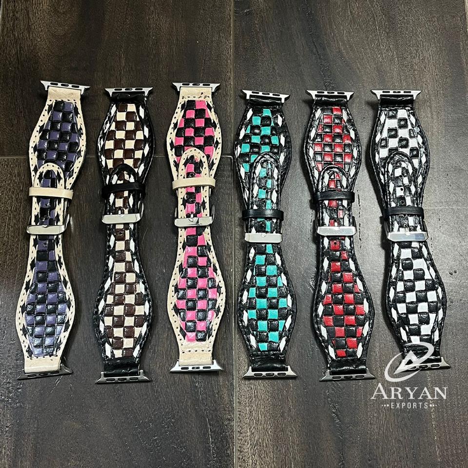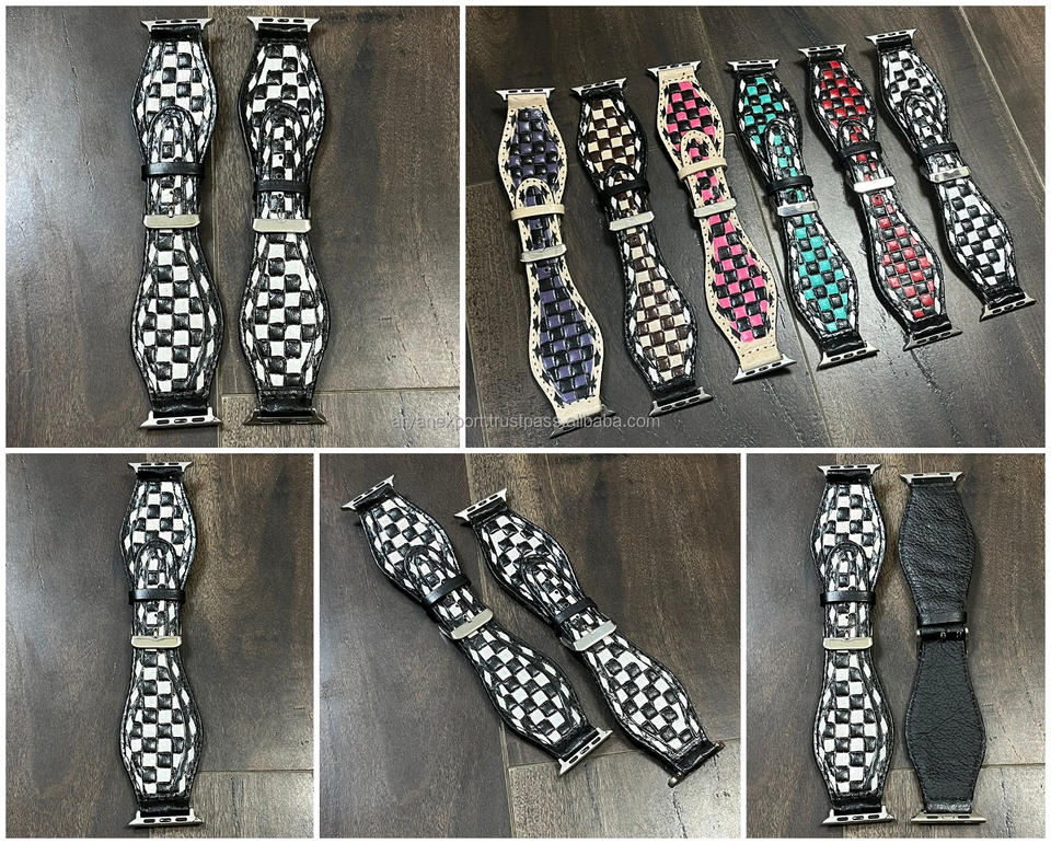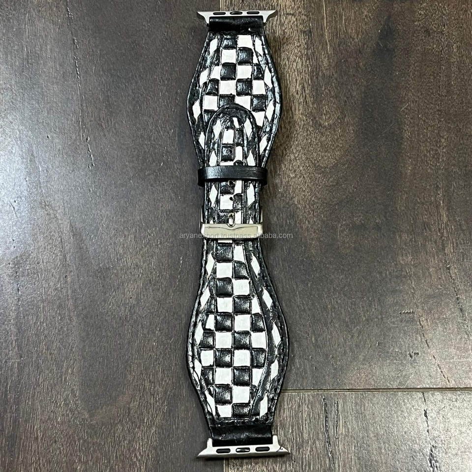 Product name:Hand Tooled Checkered Leather Smart Watch Band