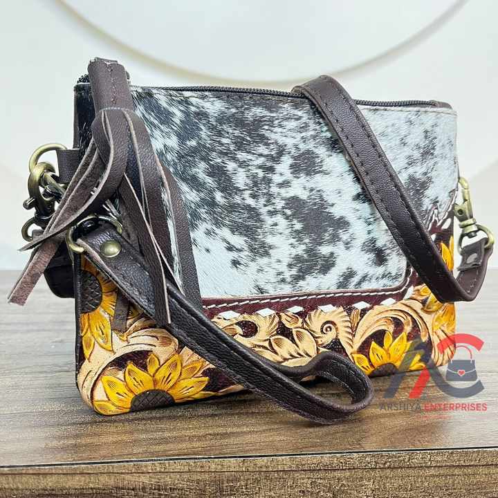 Product Name:Hand Tooled Leather Wristlet Crossbody Tassel Pouch