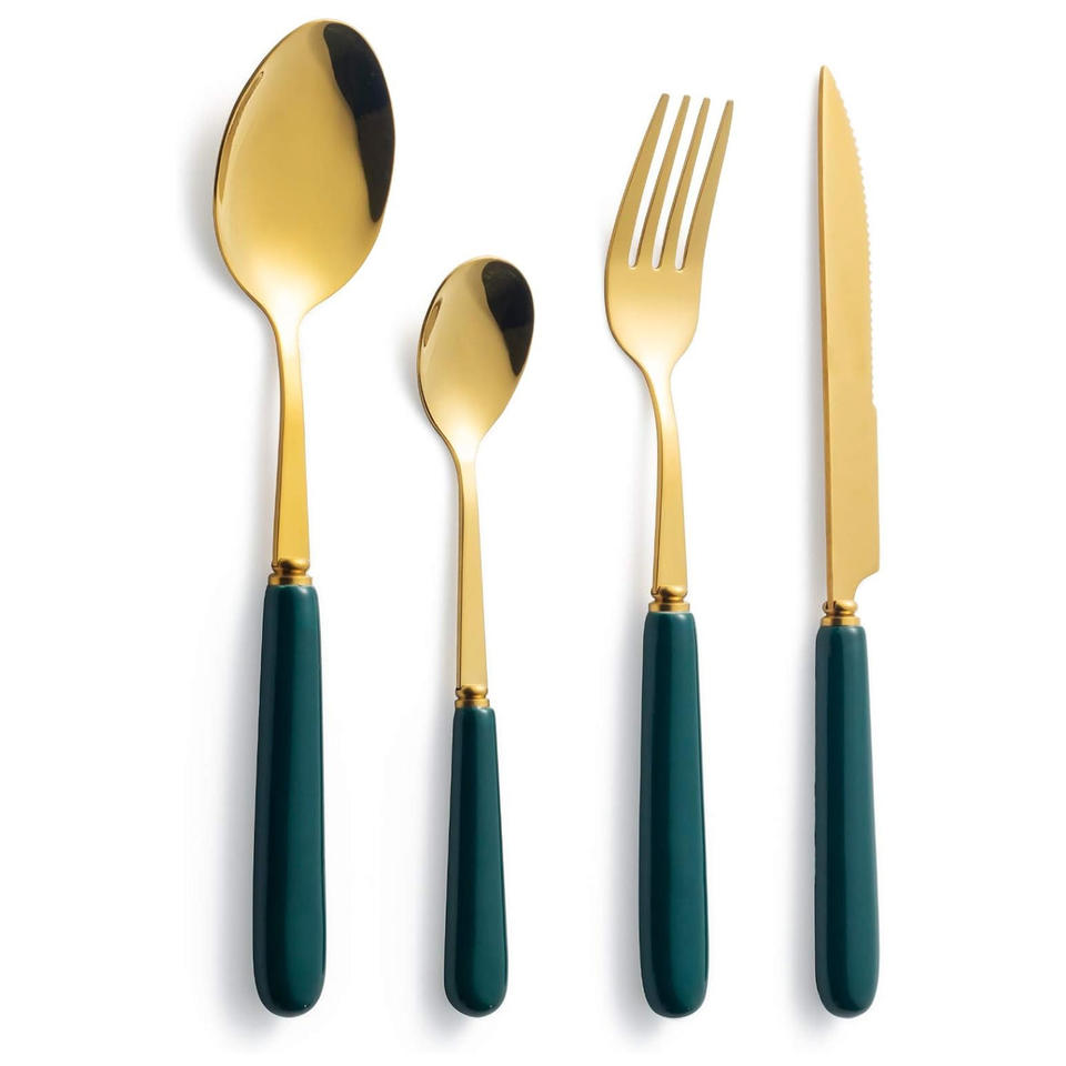 Wholesale Factory Direct India Metal Green Color Bamboo Design Handle Flatware Spoon Fork Knife Stainless Steel Cutlery Set