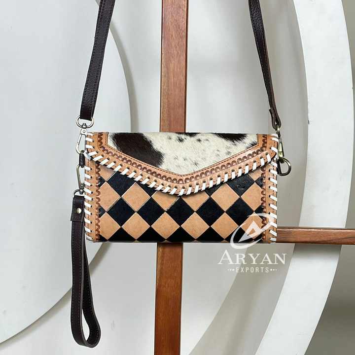 Hand Tooled Checkered Leather Crossbody Mini Bag