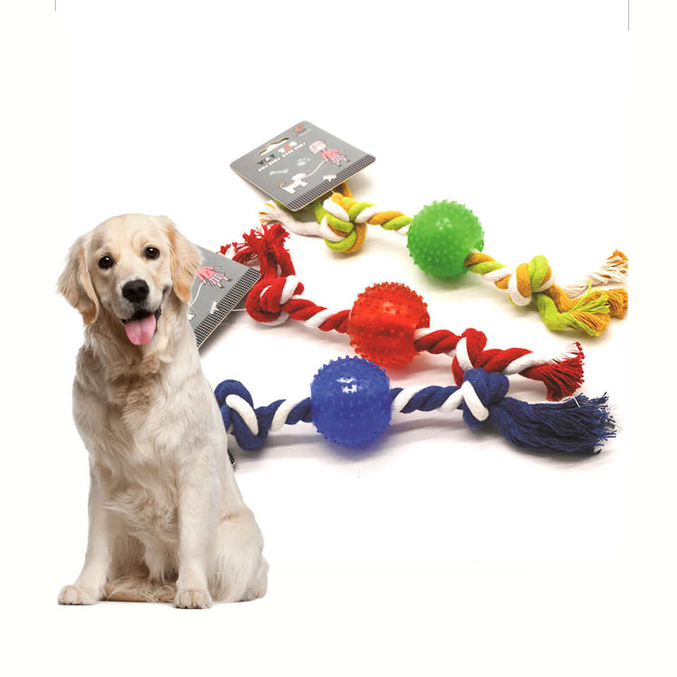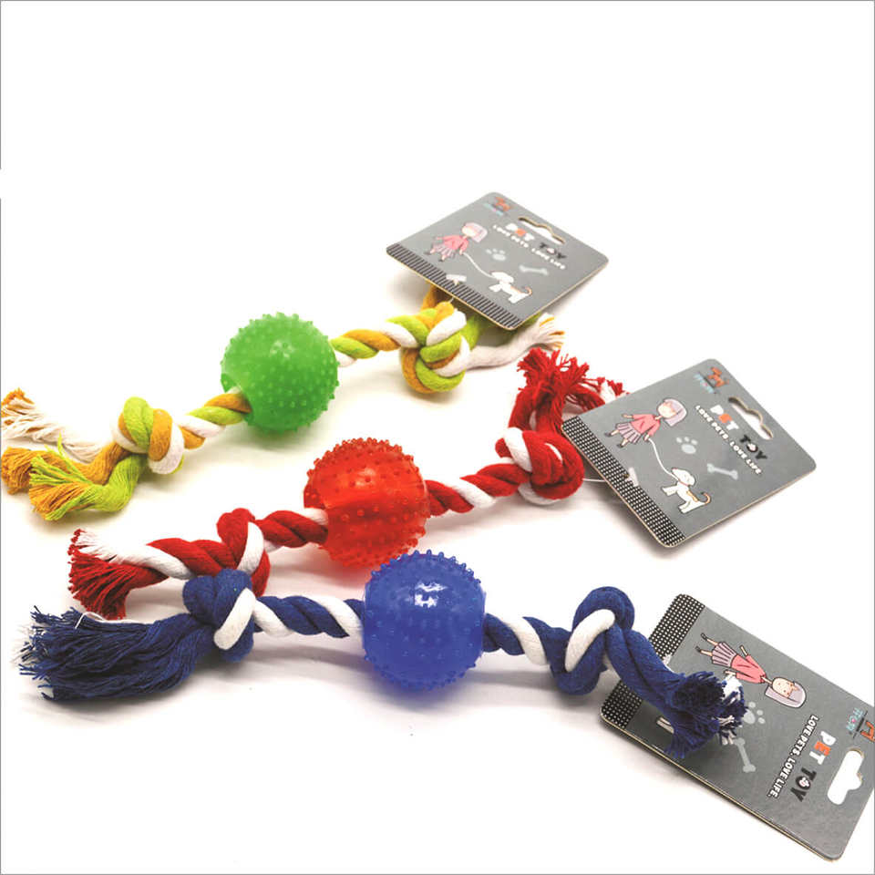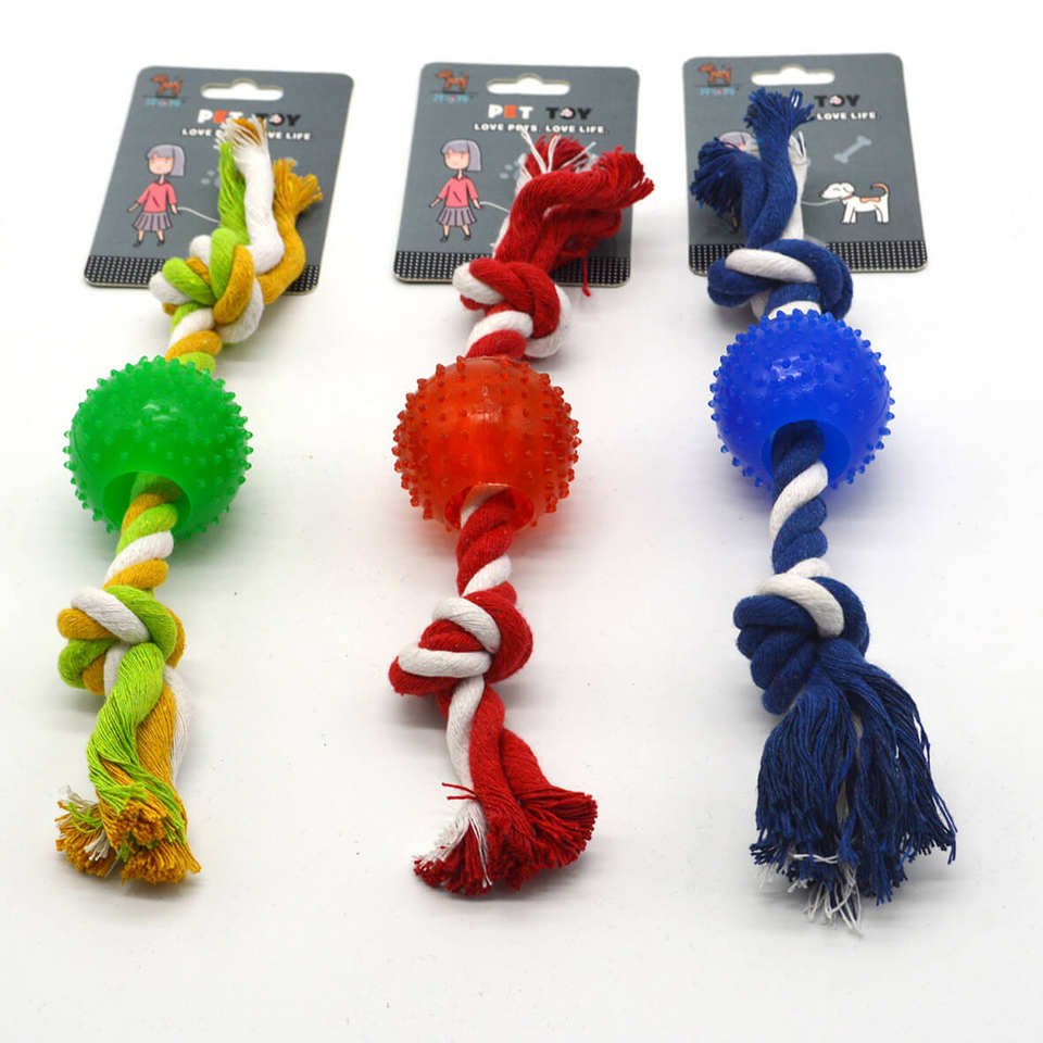 Wholesale Factory Eco-Friendly Teeth-Cleaning Interactive Cotton Rope Dog Toy with TPR Chew Toy