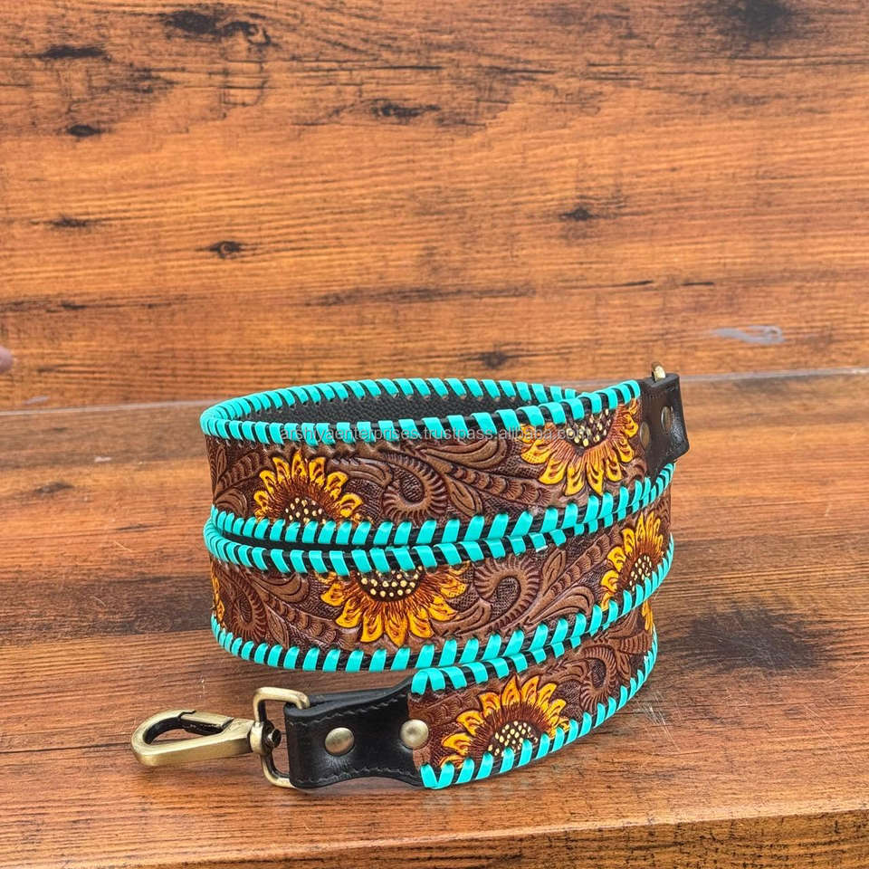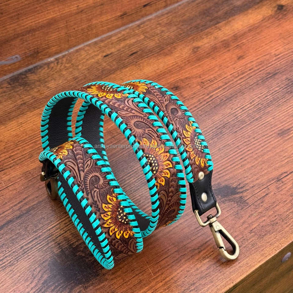 Wholesale Factory Hand Tooled Leather Bag Strap for Men & Women Zinc Alloy D Ring Buckle Custom Brown Adjustable Shoulder Straps