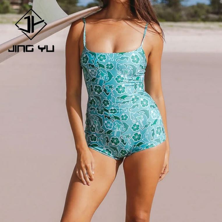 Wholesale Factory Luxury Dolphin Green Printed Halter Top Swimsuit High-quality Nylon Holiday Surfing Wear