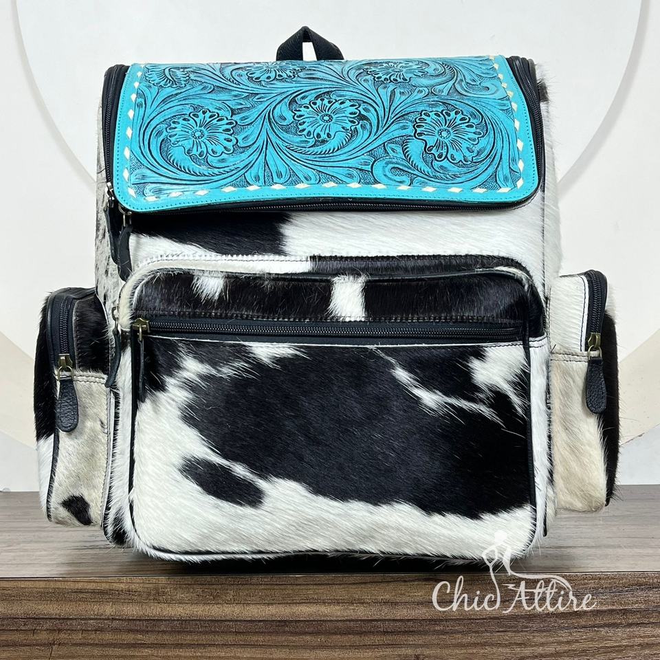 Hand Tooled Cowhide Leather Diaper Bag Backpack