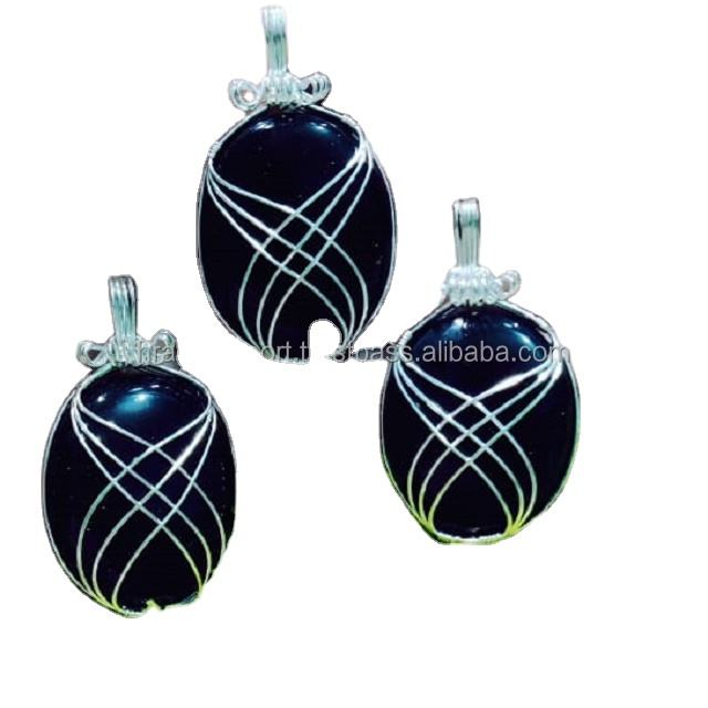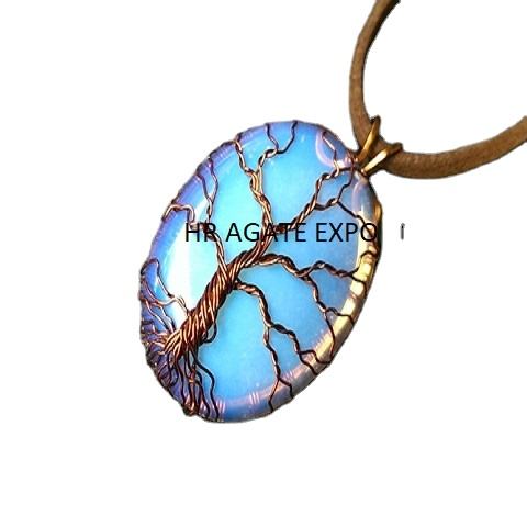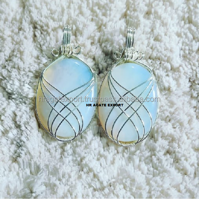 Wholesale Factory Price Necklace with Carved Opal Oval Stone Pendant Natural Gemstone Wire Wrapped Jewelry Healing Crystals