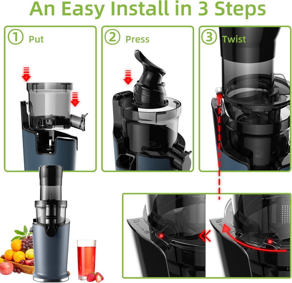Automatic Pulp Ejection, Dish Washer Safe, Non-Drip Spout, Reverse, Quiet Motor, Self Cleaning, Strength Control, Masticating Juicer, reverse function