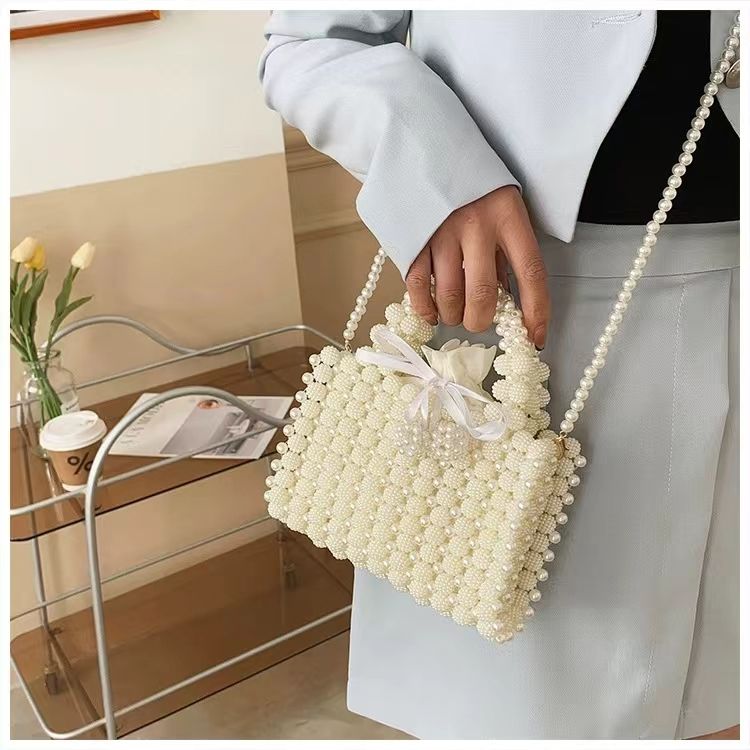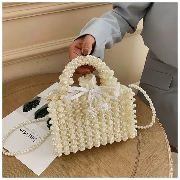 Wholesale Fairy Women Fashion Hollow Out Crossbody Tote Bags Trendy Bulk Pearl Beaded Purse Handbag