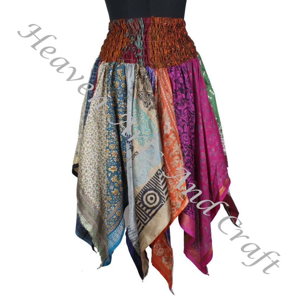 Wholesale Fancy Diamond Cut Style Skirt Bohemian Silk Scrap Handkerchief Dance Overskirt Tribal Sustainable Skirt Hippie DS008