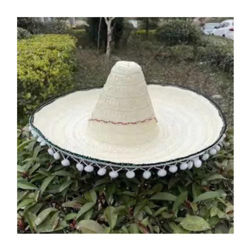 Wholesale Fancy Dress Large Sombrero Hat with Pom Edge Mexican Cowboy Hat Bamboo Straw Hats Designs Customized