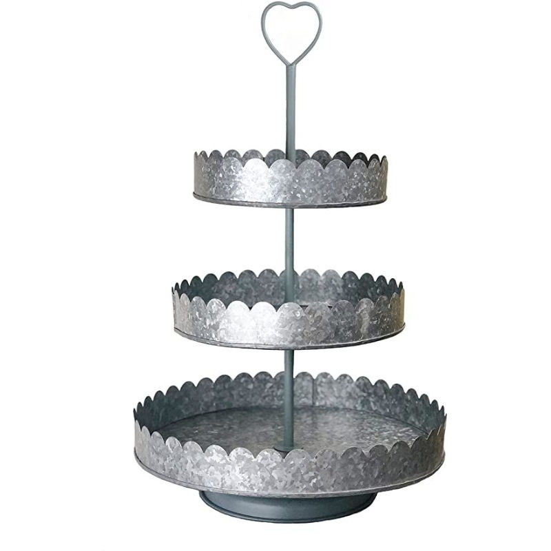 Wholesale Farmhouse Decor Galvanized Metal Scalloped Edge Two Tier Cake Stand Cupcake Display Serving Tray For Weddings Parties
