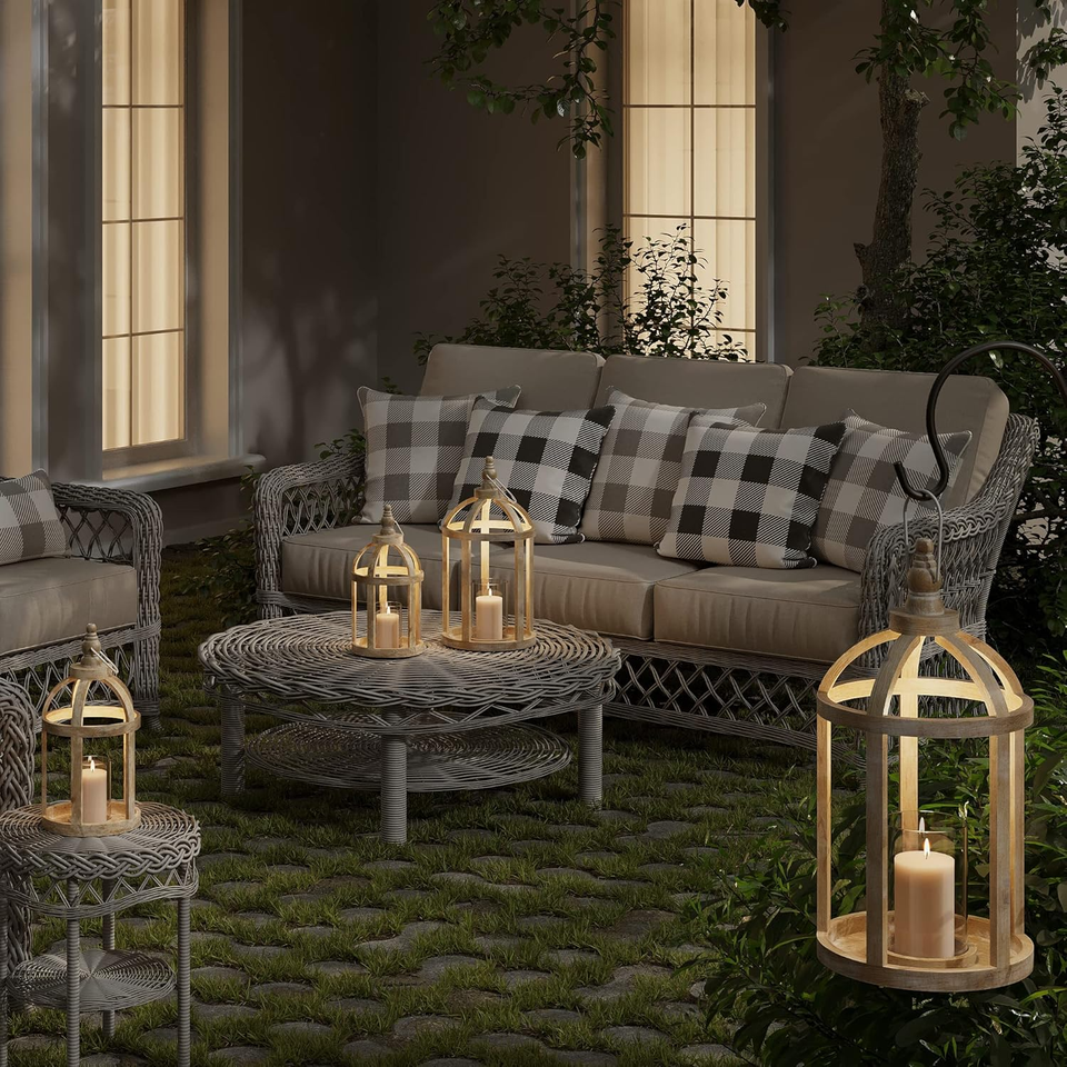 Wholesale Farmhouse Style Eco-friendly Handmade Wooden Candle Lanterns for Outdoor Wedding Christmas Home Decor Ramadan