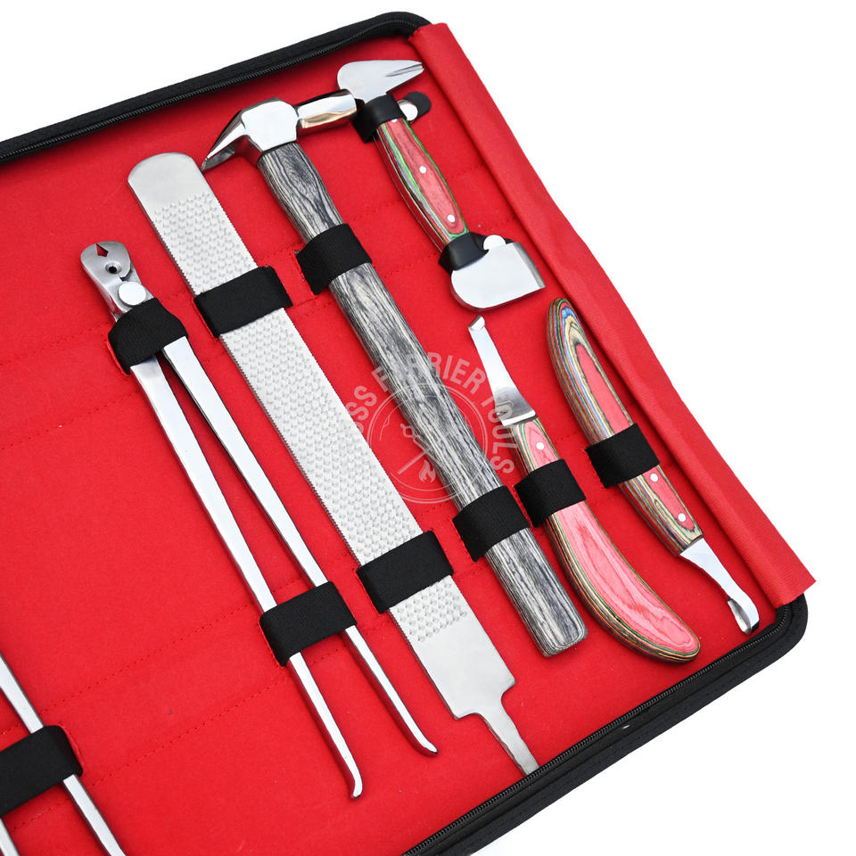 Wholesale Farrier Shoeing Kit Nail Puller Rasp File Hoof Sharpe Knife Loop Blade Fire Tong Spreader Driving Hammer for Hooves