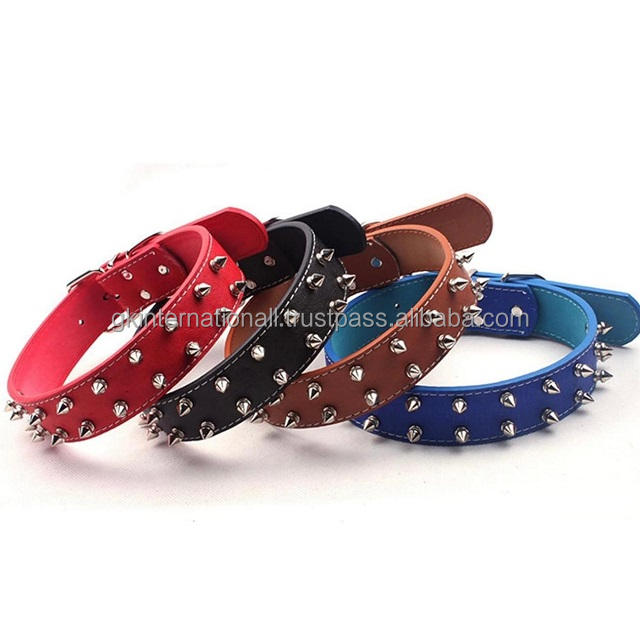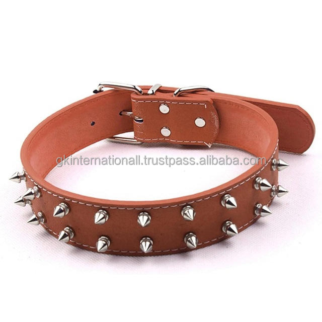 Wholesale Fashion Adjustable Design Leather Spiked Rivet studded Pet Dog Collar Custom Extra Wide Solid Leather Dog Collar