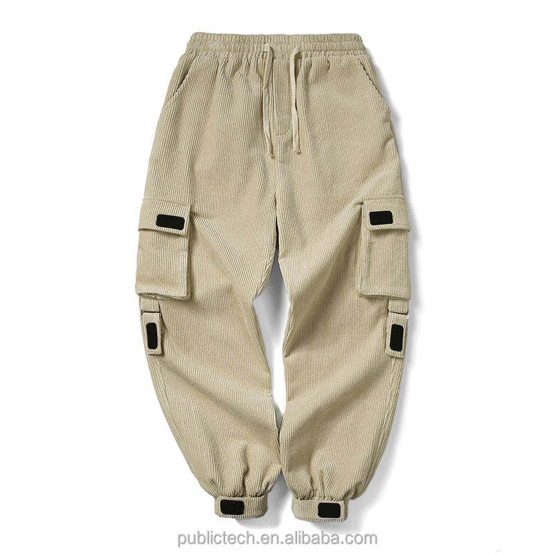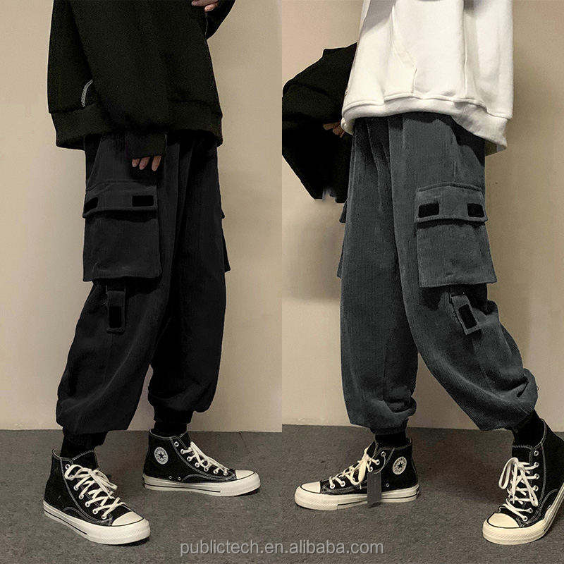 Wholesale Fashion Black Heavy Cotton Multi Pockets Custom High Quality Baggy Mens Corduroy Cargo Pants