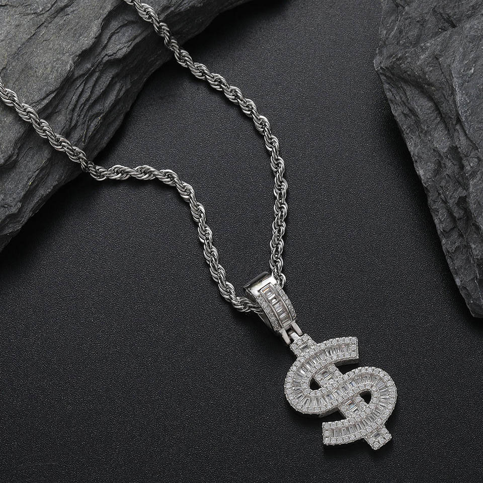 Wholesale Fashion Bling Bling Jewelry 925 Silver Hip Hop Dollar Sign Money Necklace for Men