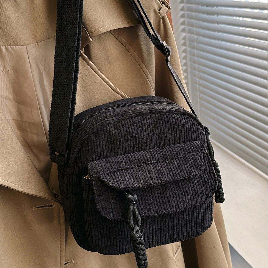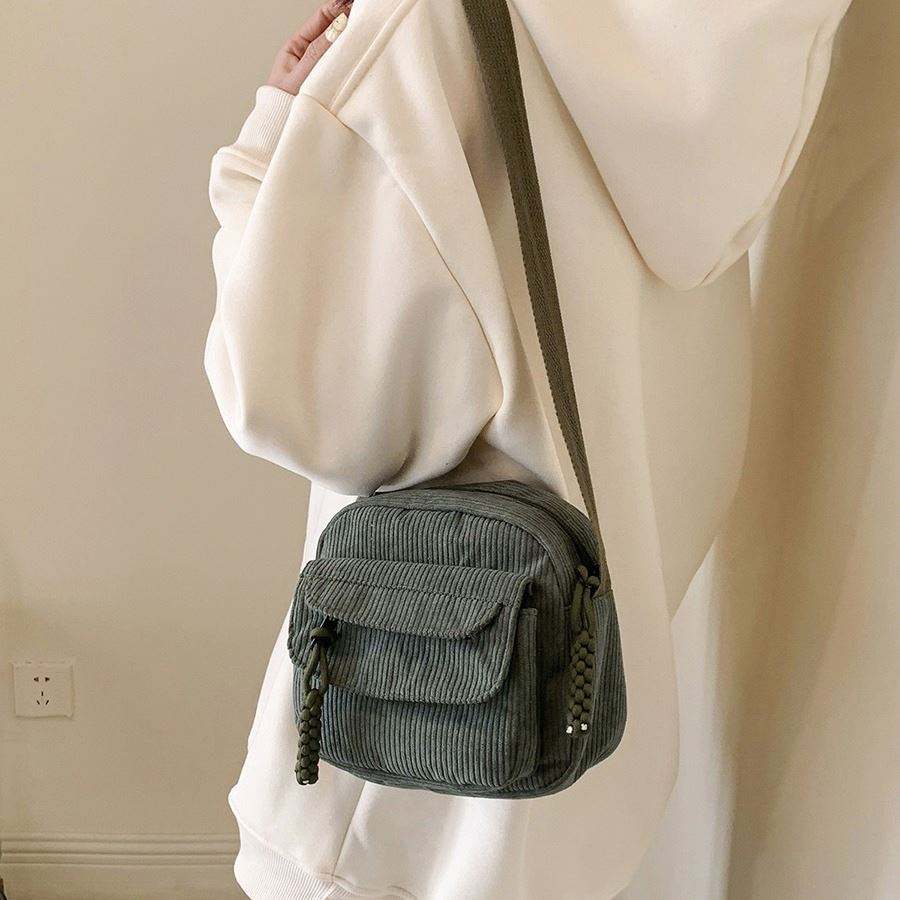 Wholesale Fashion Corduroy Women's Small Single Strap ZIP Closure Shoulder/Crossbody Tote Messenger Bag Cute Student Street