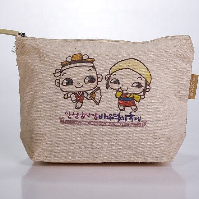 Wholesale Fashion Cosmetic Shopping Bags Custom Logo Printing Plain Blank Canvas Metal Zipper Cotton Handle Featuring Screen/Dot