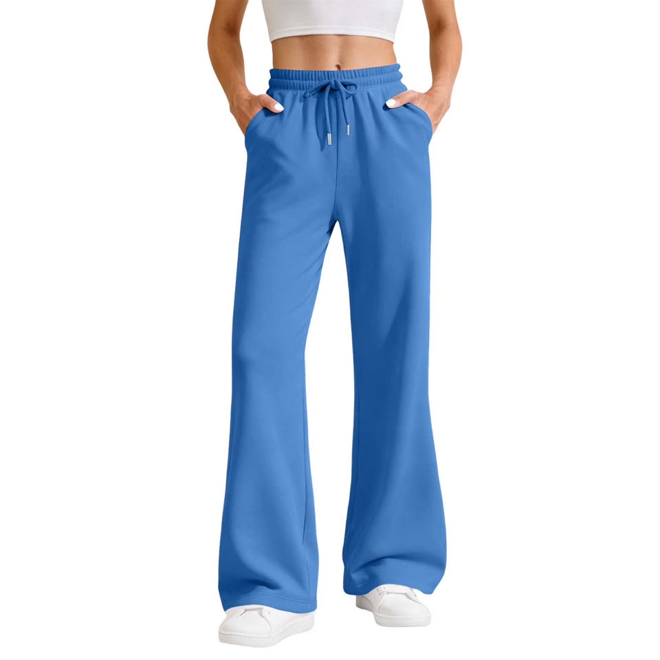 Wholesale Fashion Design Casual Straight Leg Flared Pants Women Sweatpants Custom Cotton Fleece Flat Flared Pants for Women