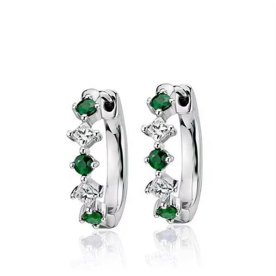 Wholesale Fashion Jewelry 925 Sterling Silver Emerald Wit White CZ Hoop Earing for Girls