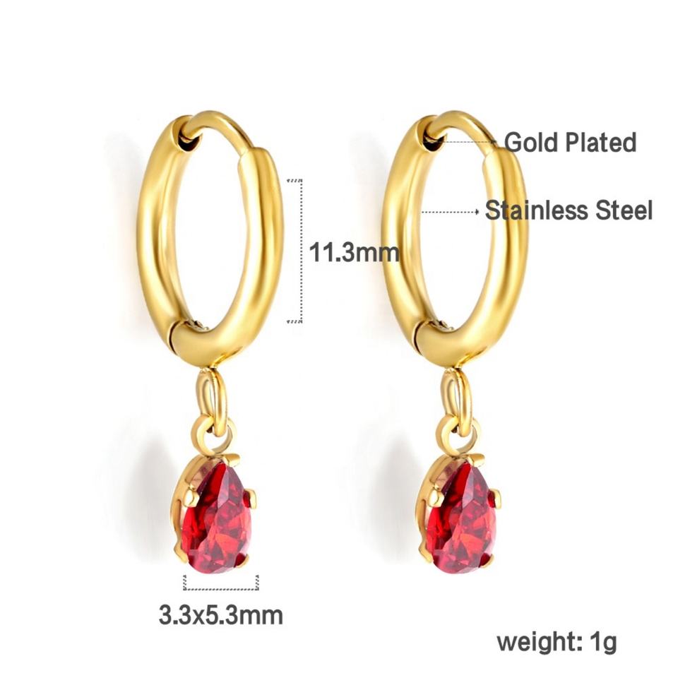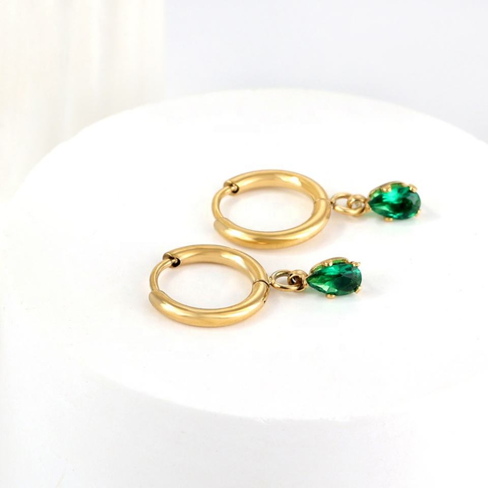 Wholesale Fashion Jewelry Colorful Water Drop Zircon 18K Gold Plated Stainless Steel Polychrome Diamond Hoop Earrings for Women
