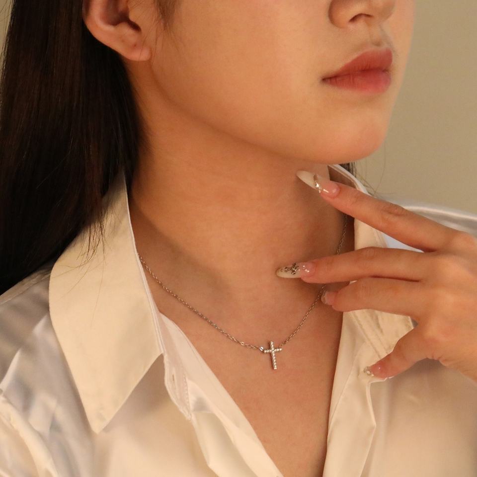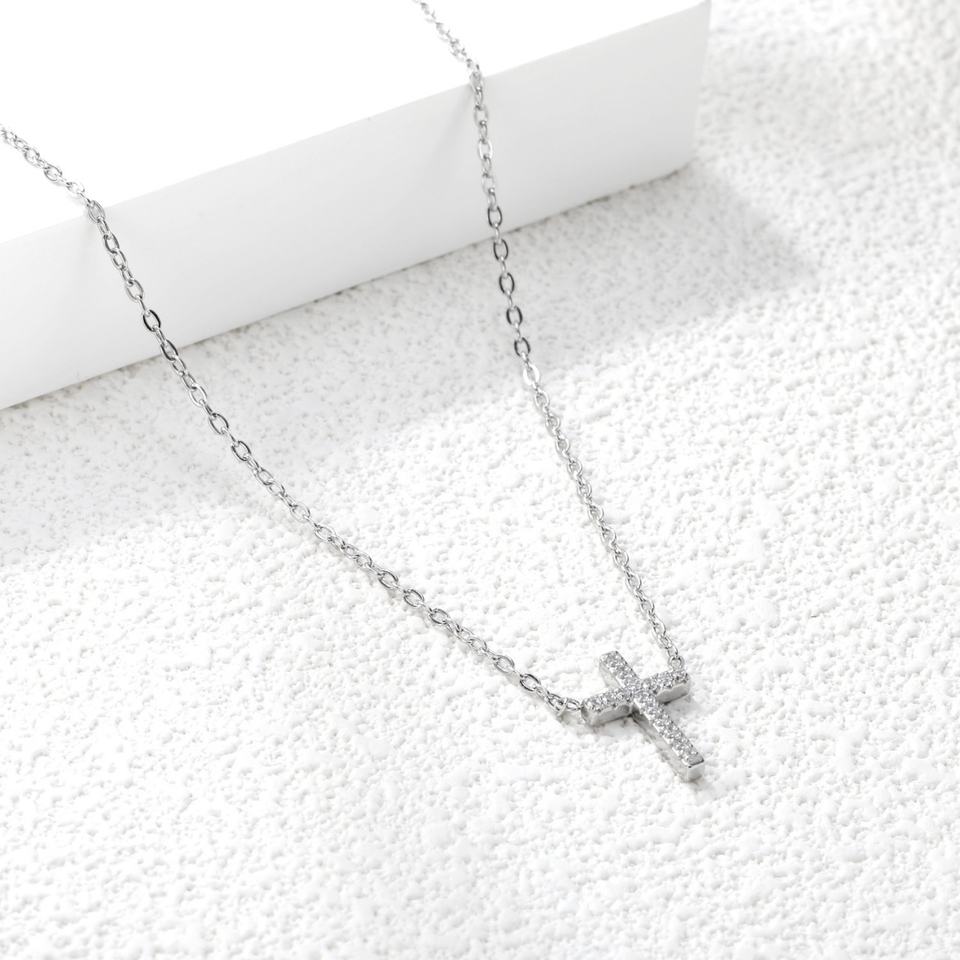 Wholesale Fashion Jewelry Stainless Steel Chain Religious Cross Pendant Necklace Zircon Charm Necklace Cubic Zirconia Necklaces