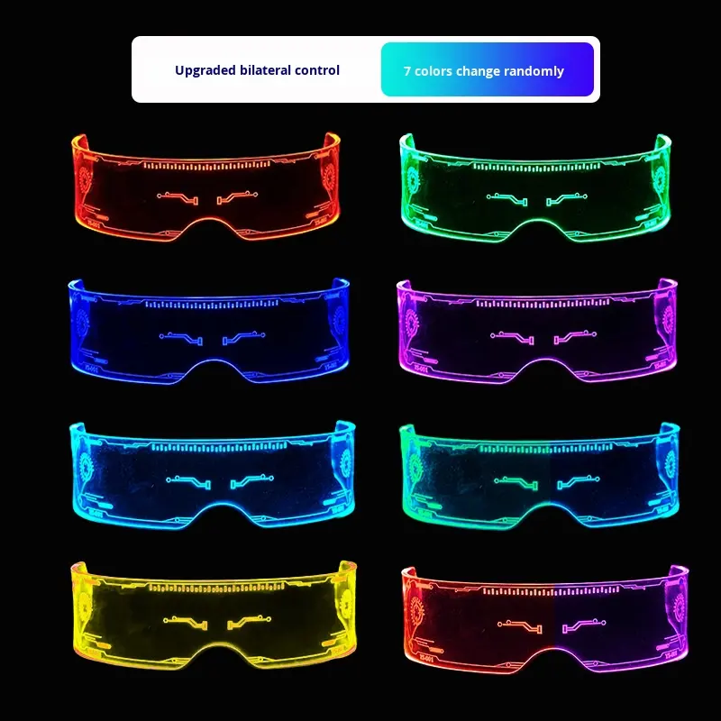 Wholesale Fashion Luminous Decorative Glasses Neon Light Decoration LED Sunglasses for Nightclub Dance Music Rave Costume Night
