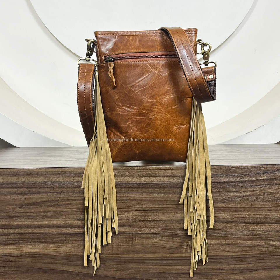 Product name:Cowhide Leather Fringe Crossbody Bag
