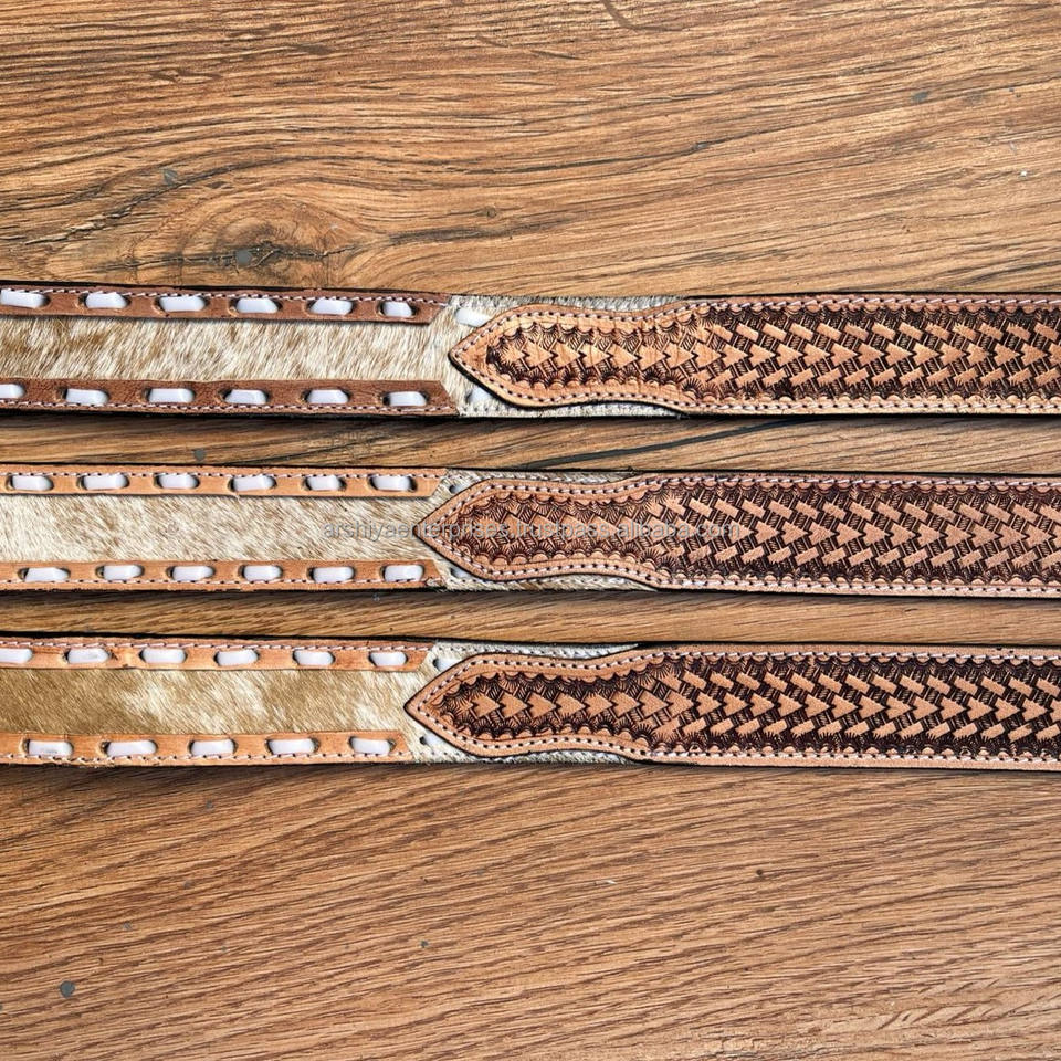 Hand Tooled Cowhide Leather Alloy Buckle Belt