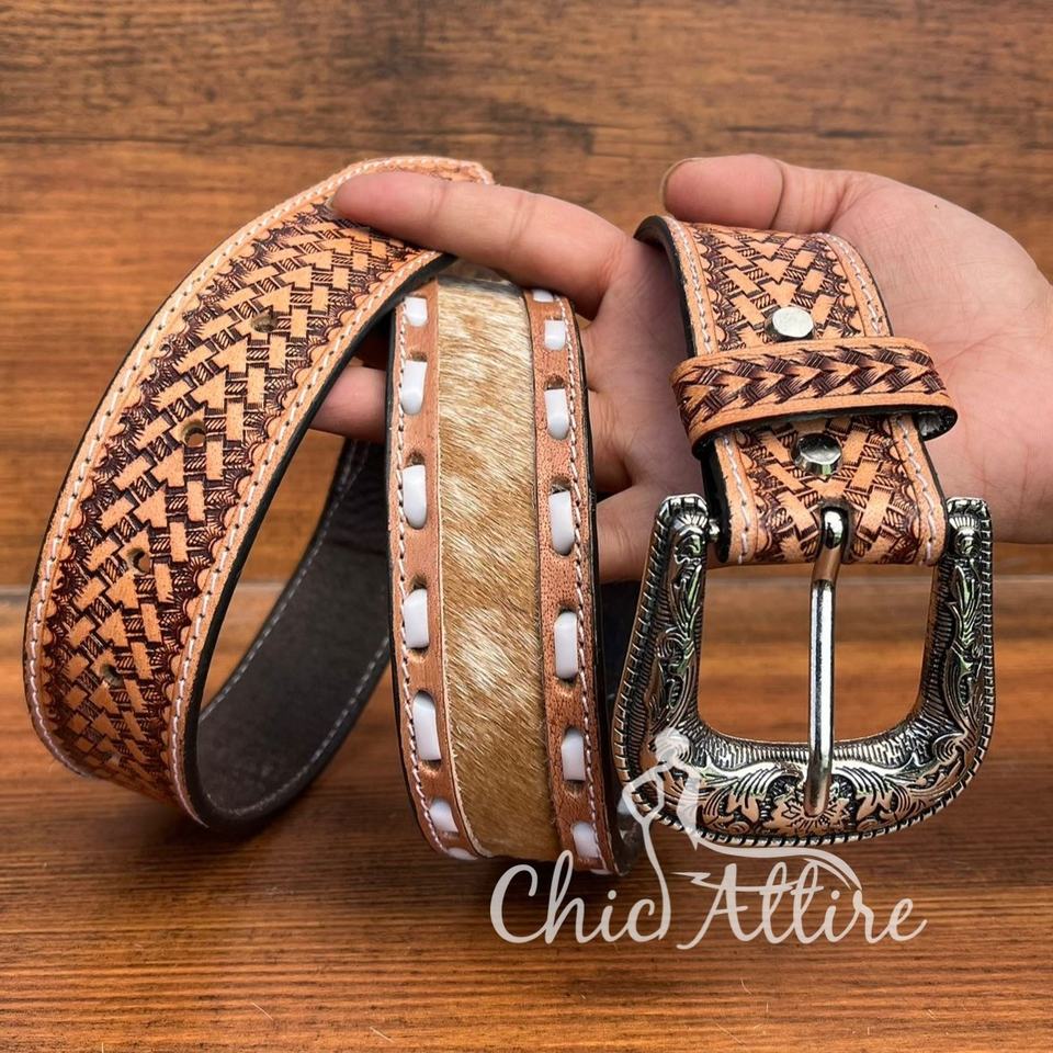 Product name:Hand Tooled Cowhide Leather Alloy Buckle Belt