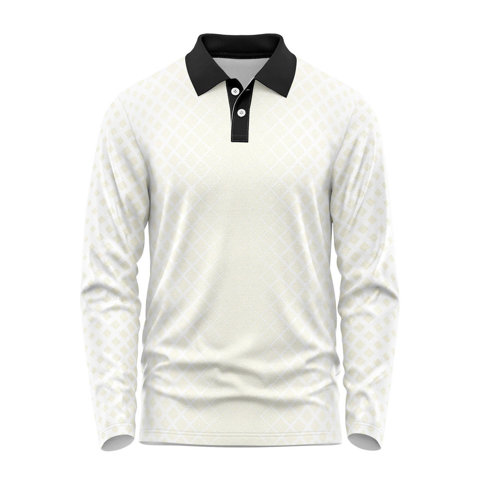 Wholesale Fashion Men's Long Sleeve Polo Shirt with All Over Pattern Soft Stretch Fabric Button Collar Shirts for Golf, Workwear