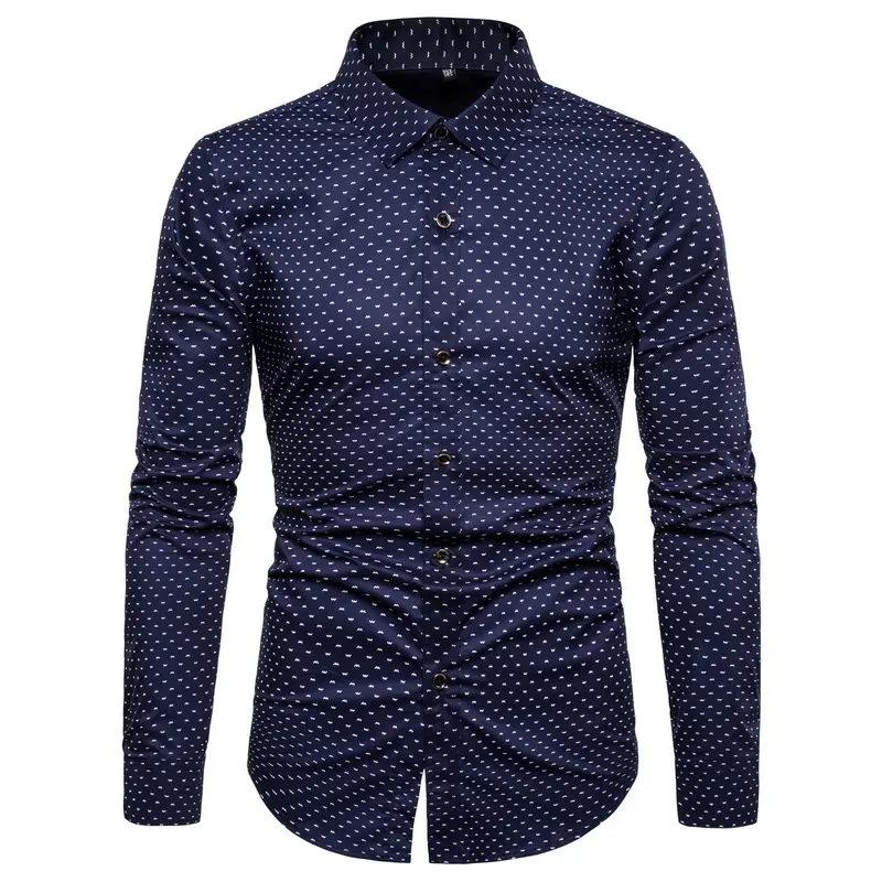 Wholesale Fashion Men's Long-sleeved Shirts Ink Printing Trend Men's European and American Men's Casual Shirts